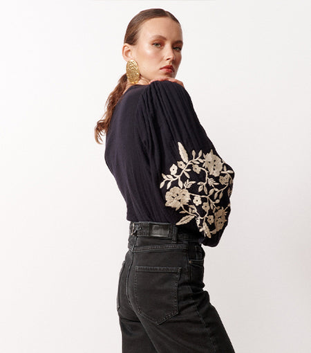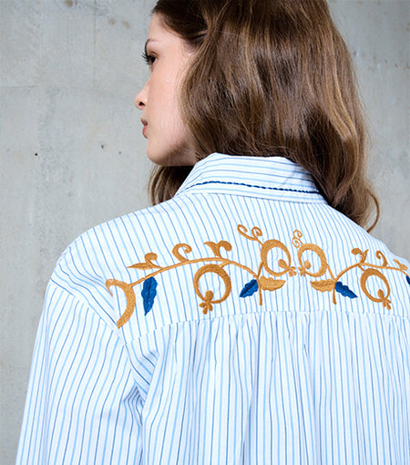Certaines blouses signatures de Stella Forest sont brodées à la main, en Inde,