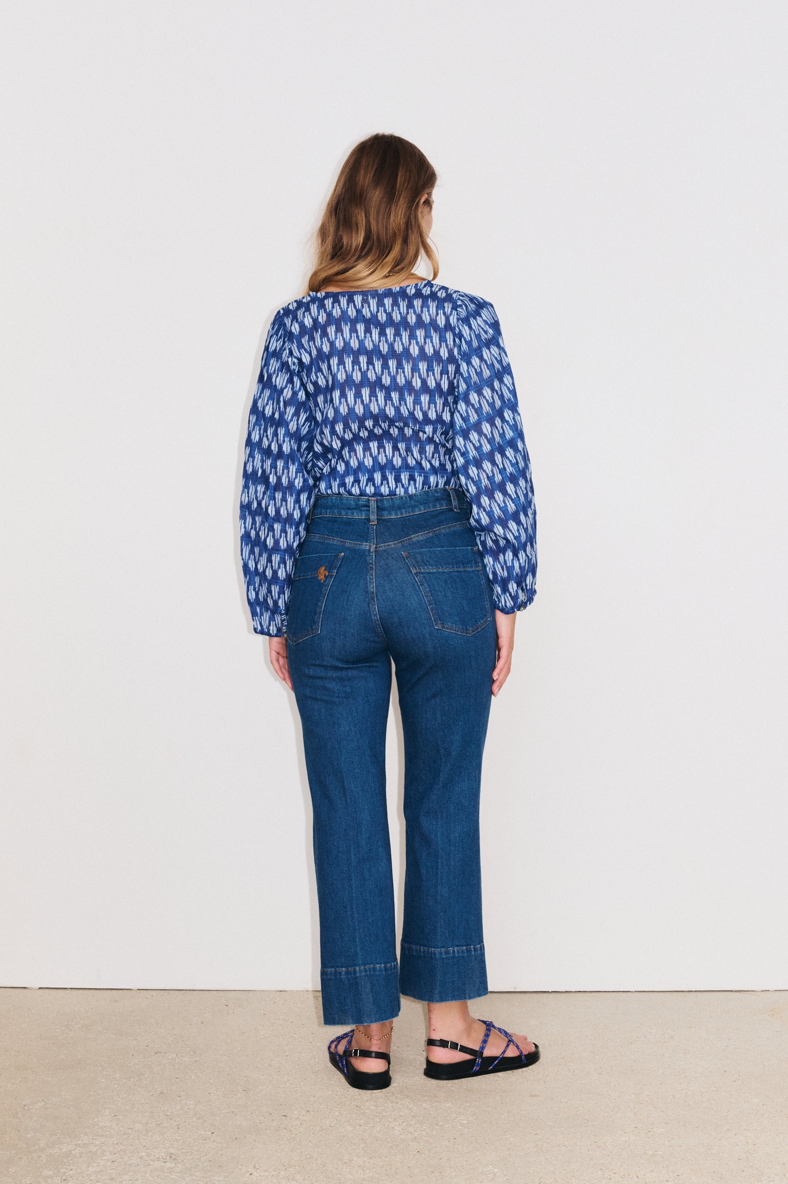Graphic and feminine, these 7/8-length trousers play with volume to create a distinctly modern silhouette. An elegant piece that naturally enhances the figure.