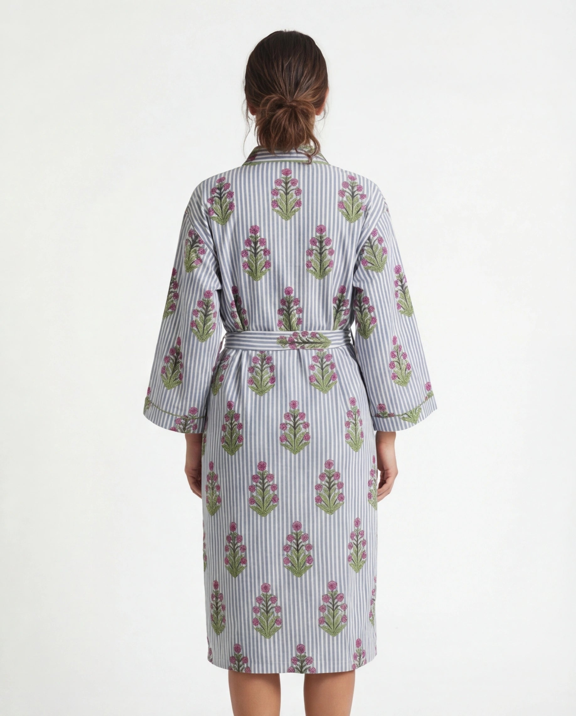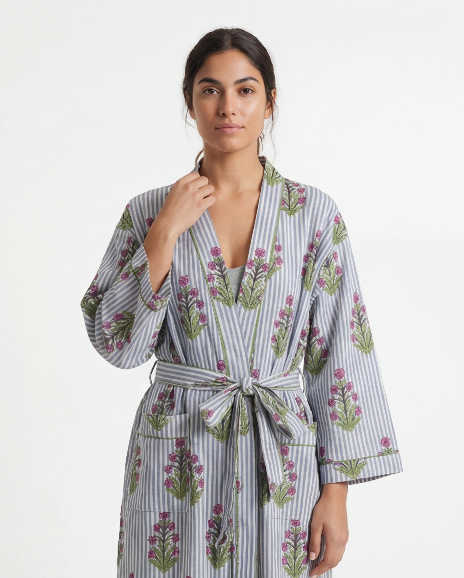 Imprimé rayures & motifs floraux : Un mix délicat d’inspirations indiennes façon bloc print, parfait pour celles qui aiment les pièces originales.