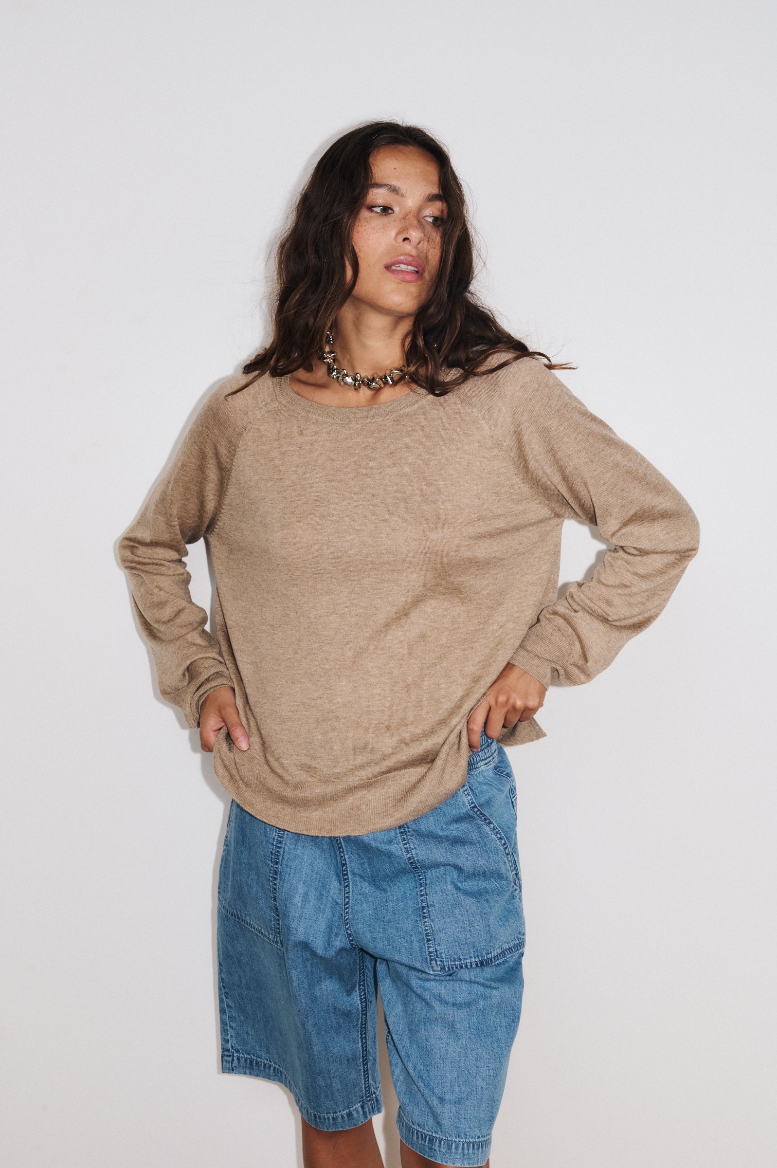 Voir le lookLe pull Tessa est confectionné dans un tricot doux et confortable, idéal pour un usage quotidien. Sa coupe droite et son style minimaliste chic en font une pièce facile à associer. L’emmanchure raglan garantit une aisance optimale, tandis que les finitions en mini-rib à l’encolure bateau, aux manches longues et à la base structurent la silhouette. Les fentes latérales apportent modernité et liberté de mouvement.