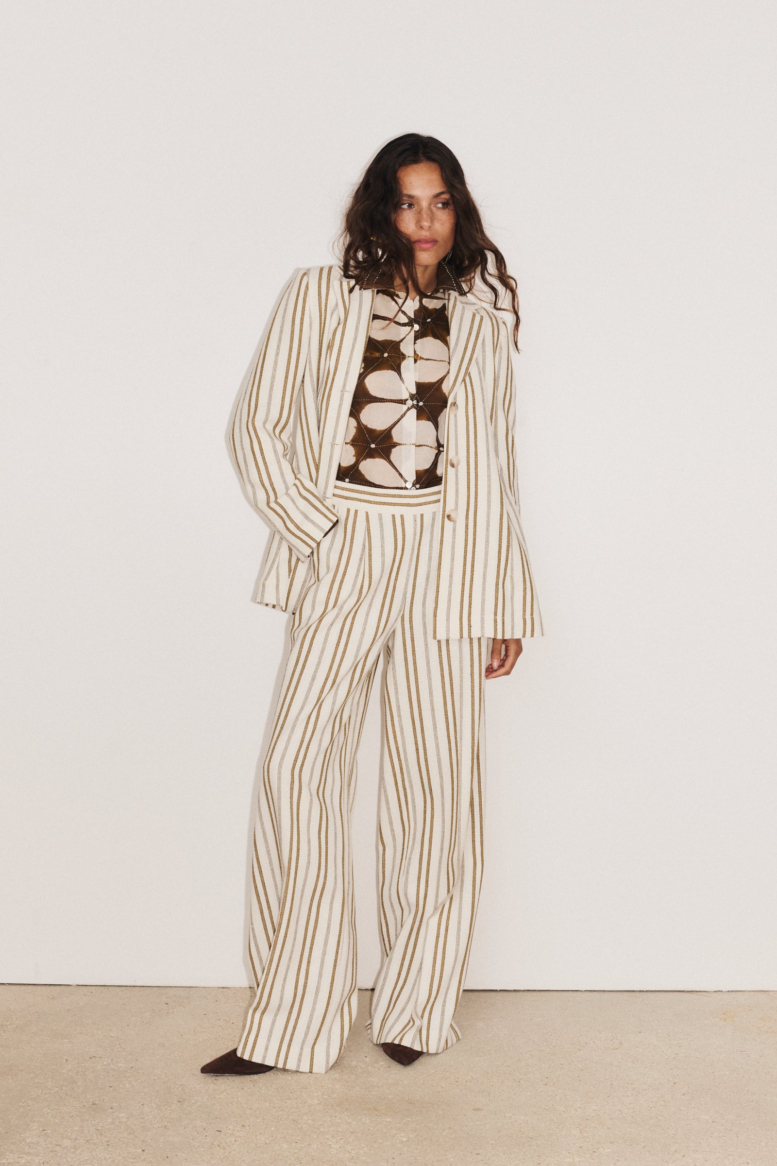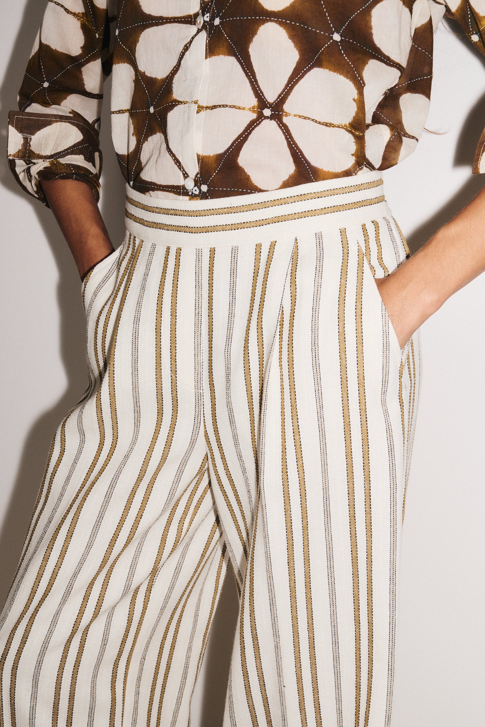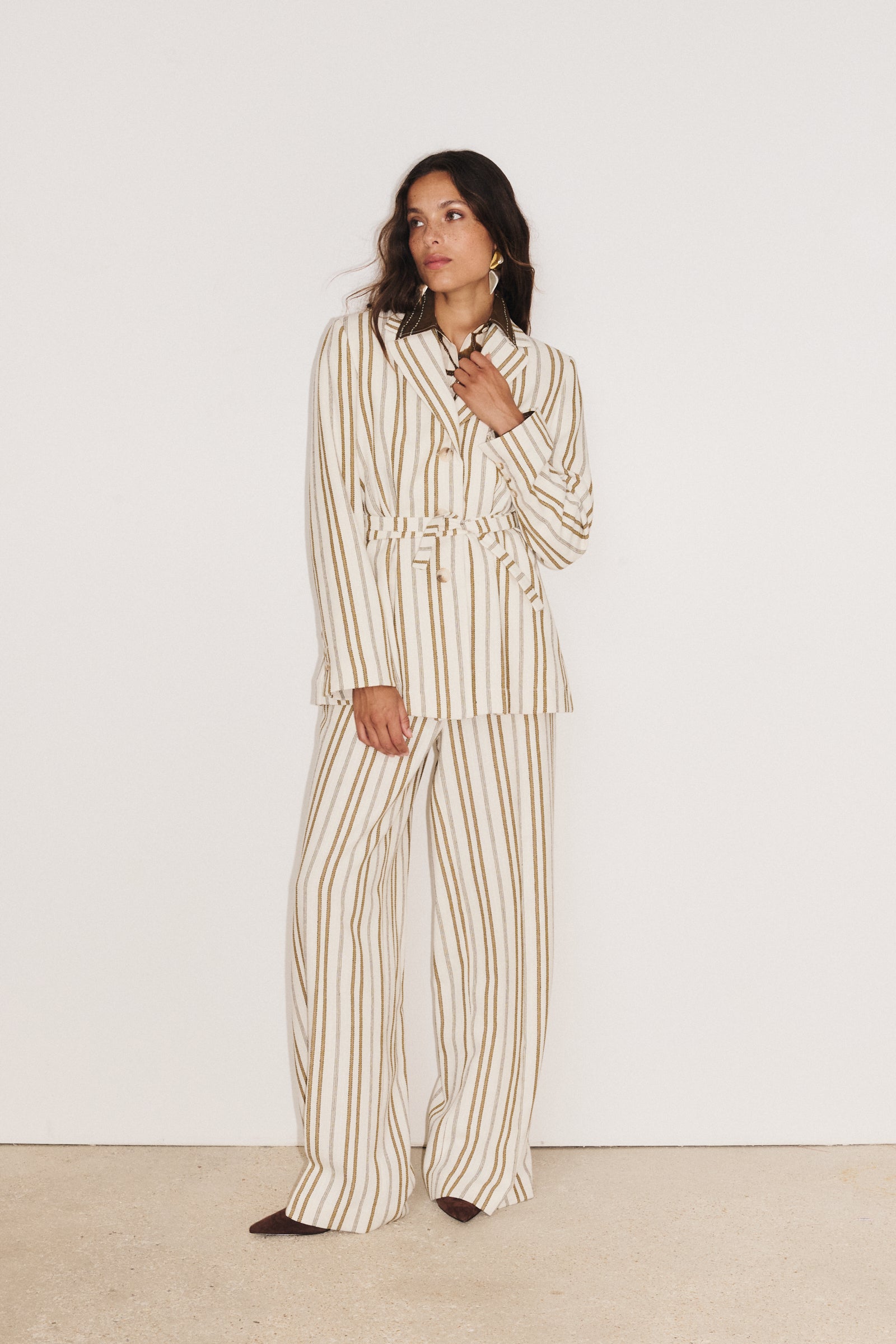 Le pantalon Panama allie savoir-faire français et style intemporel. Son jacquard italien dans un camaïeu naturel de brin apporte une touche sophistiquée à vos looks, tout en garantissant confort et aisance au quotidien.