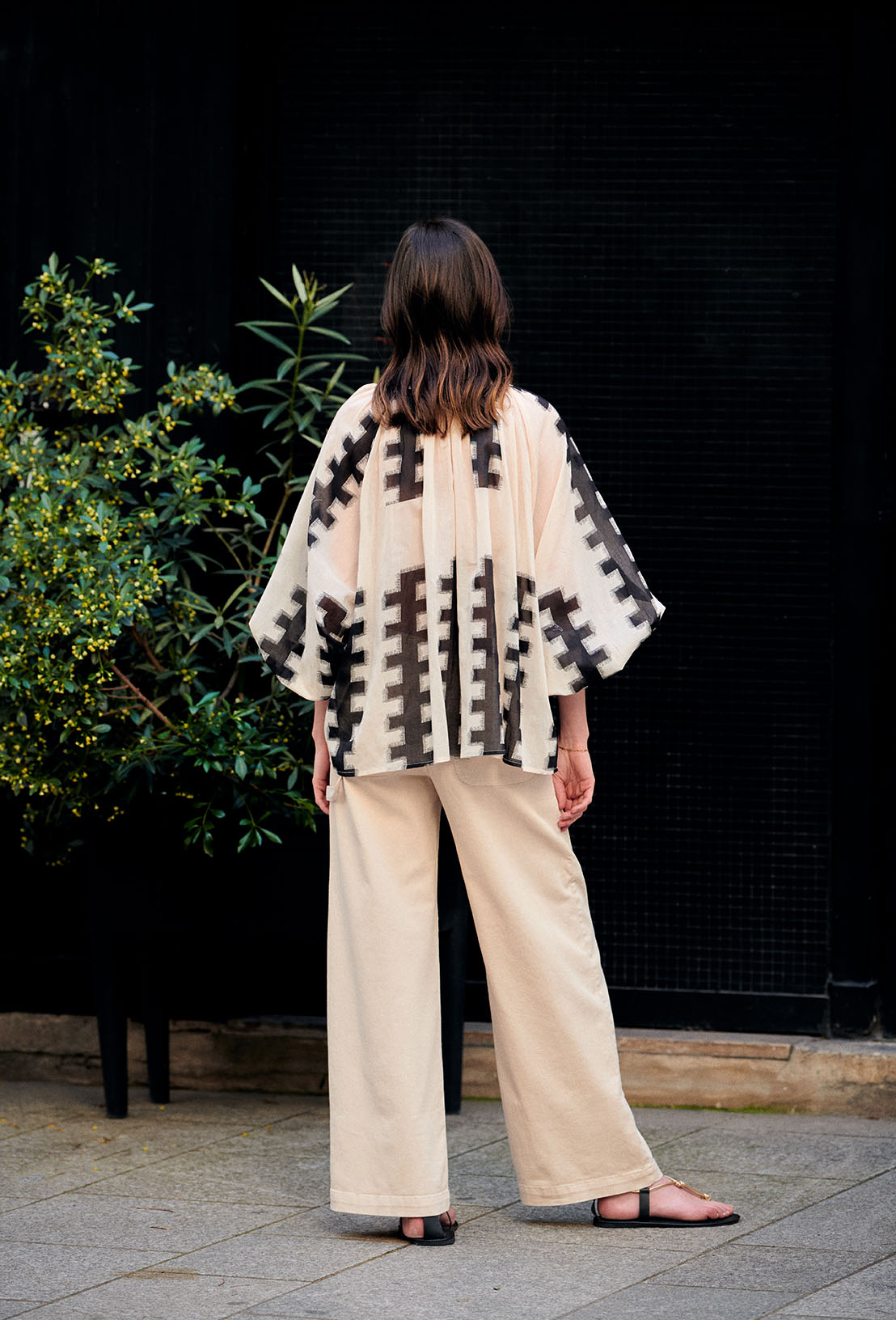 Hyacinthe, c’est notre tunique en voile de coton imprimé. Léger décolleté féminin qui se referme par un bouton. Imprimé graphique bicolore. Manches bouffantes et poignets élastiqués pour le confort et le volume. Se décline en plusieurs modèles. Légère et vaporeuse, la tunique Hyacinthe vous accompagnera tout l’été, en toute occasion.