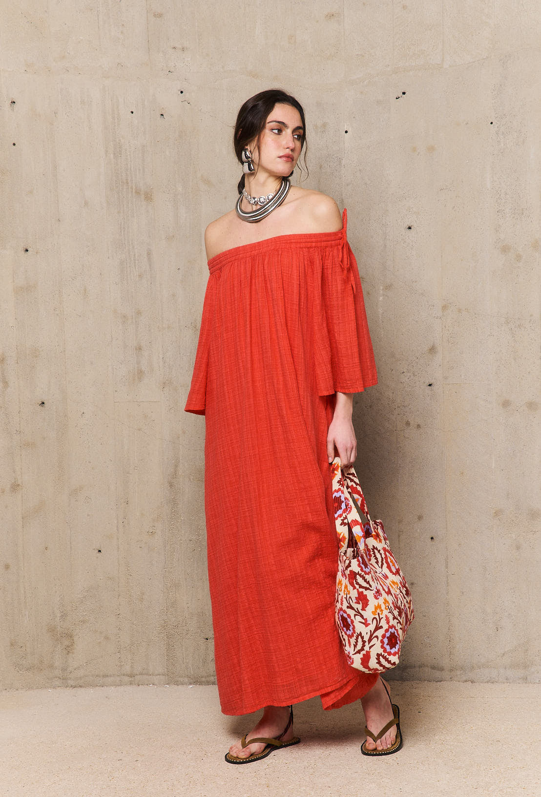Voir le look- encolure réglable par un cordon sur l’épaule