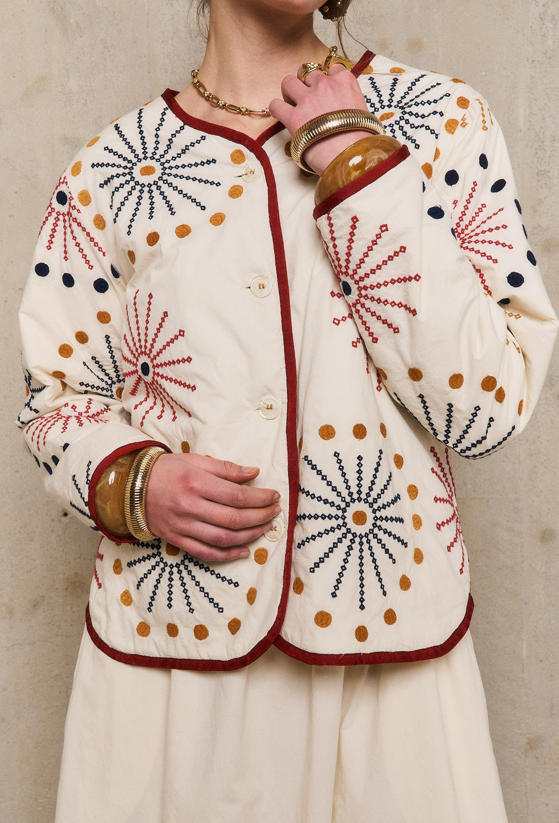 - côté matelassé avec poche plaquée biaisée et padding contrastées