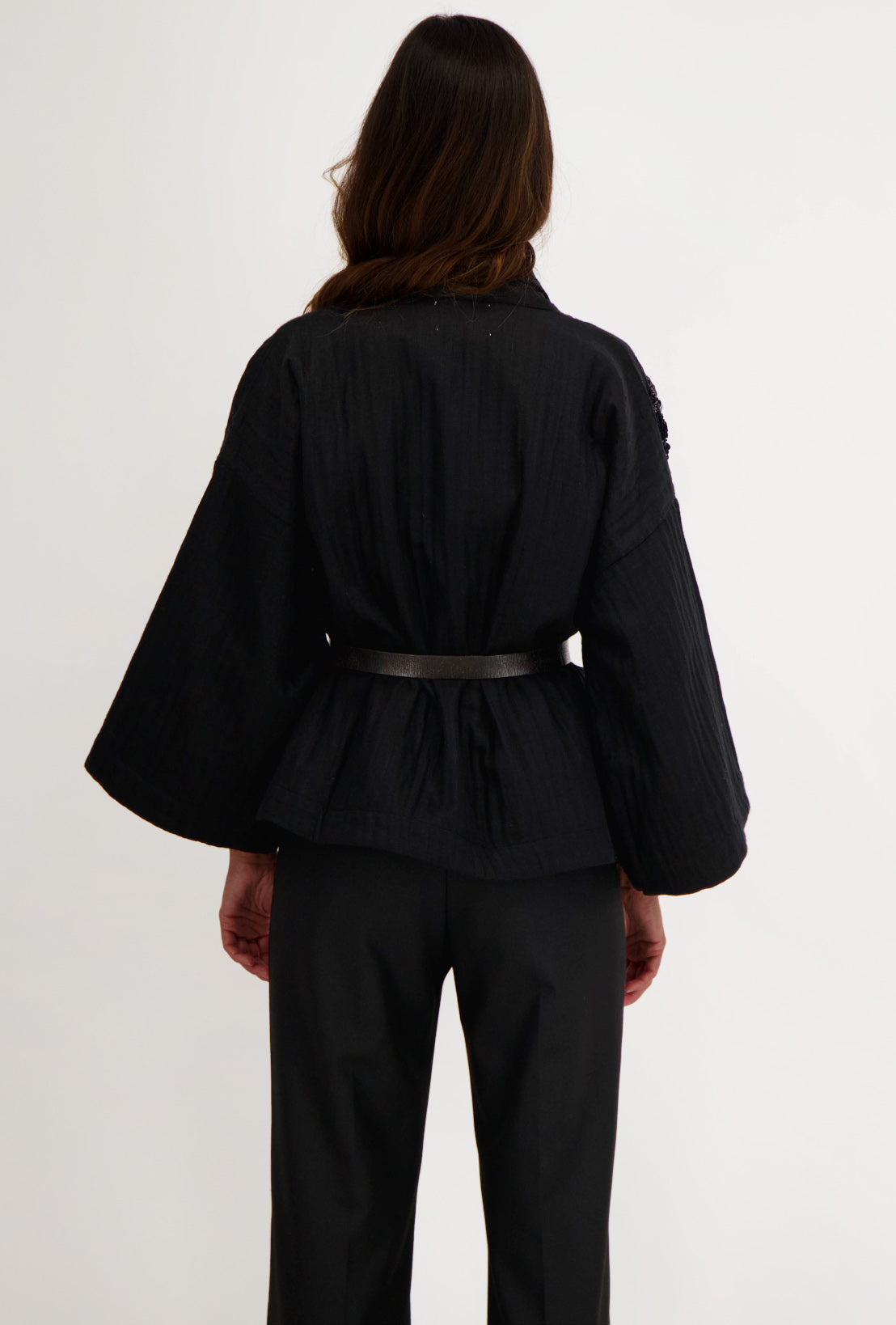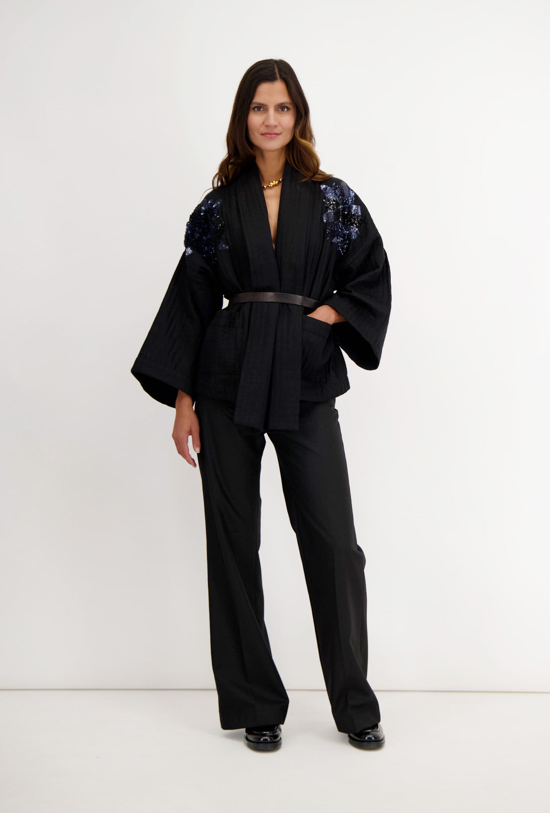 Le conseil de notre styliste: Cette veste d'exception transforme instantanément une tenue simple en look de soirée. Portez-la sur une robe unie pour mettre en valeur ses broderies.